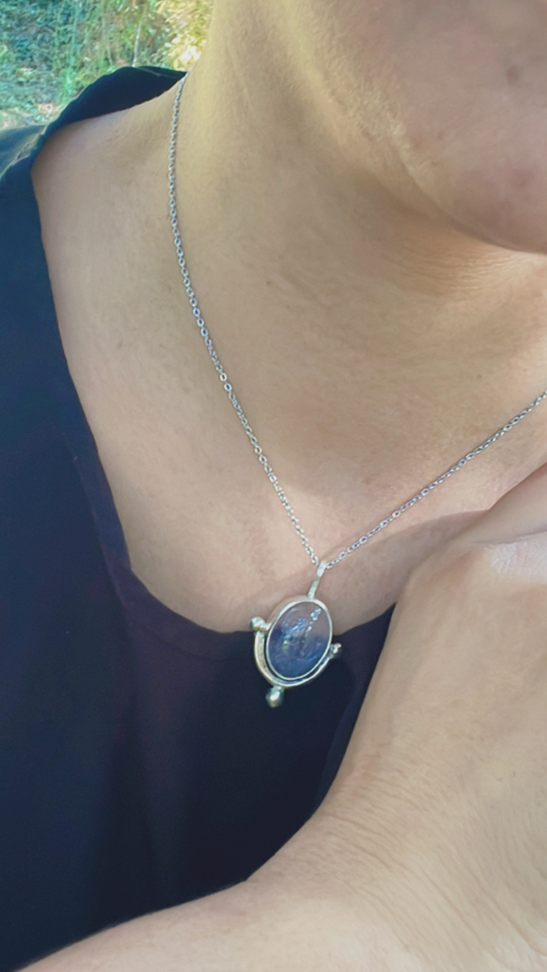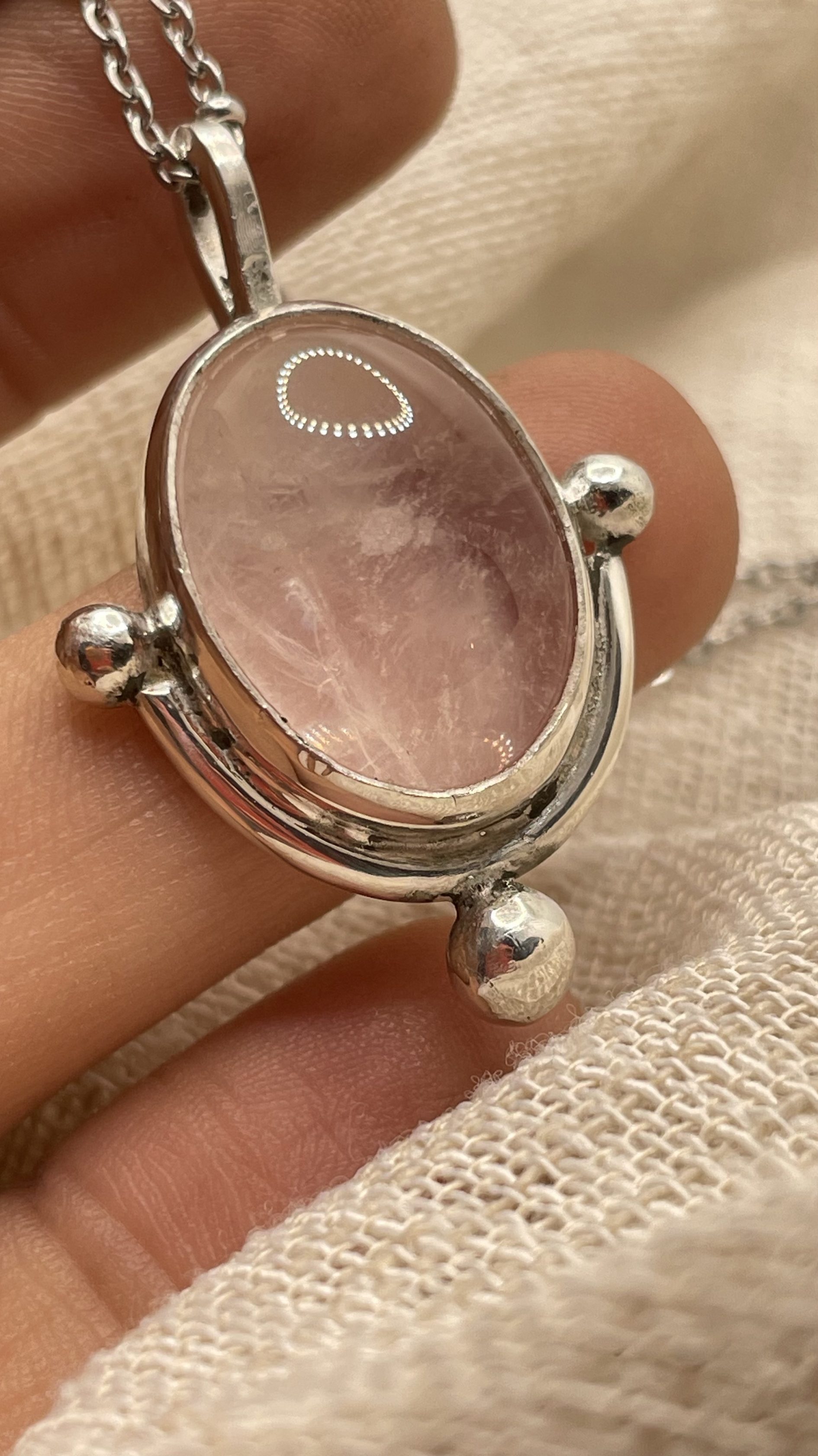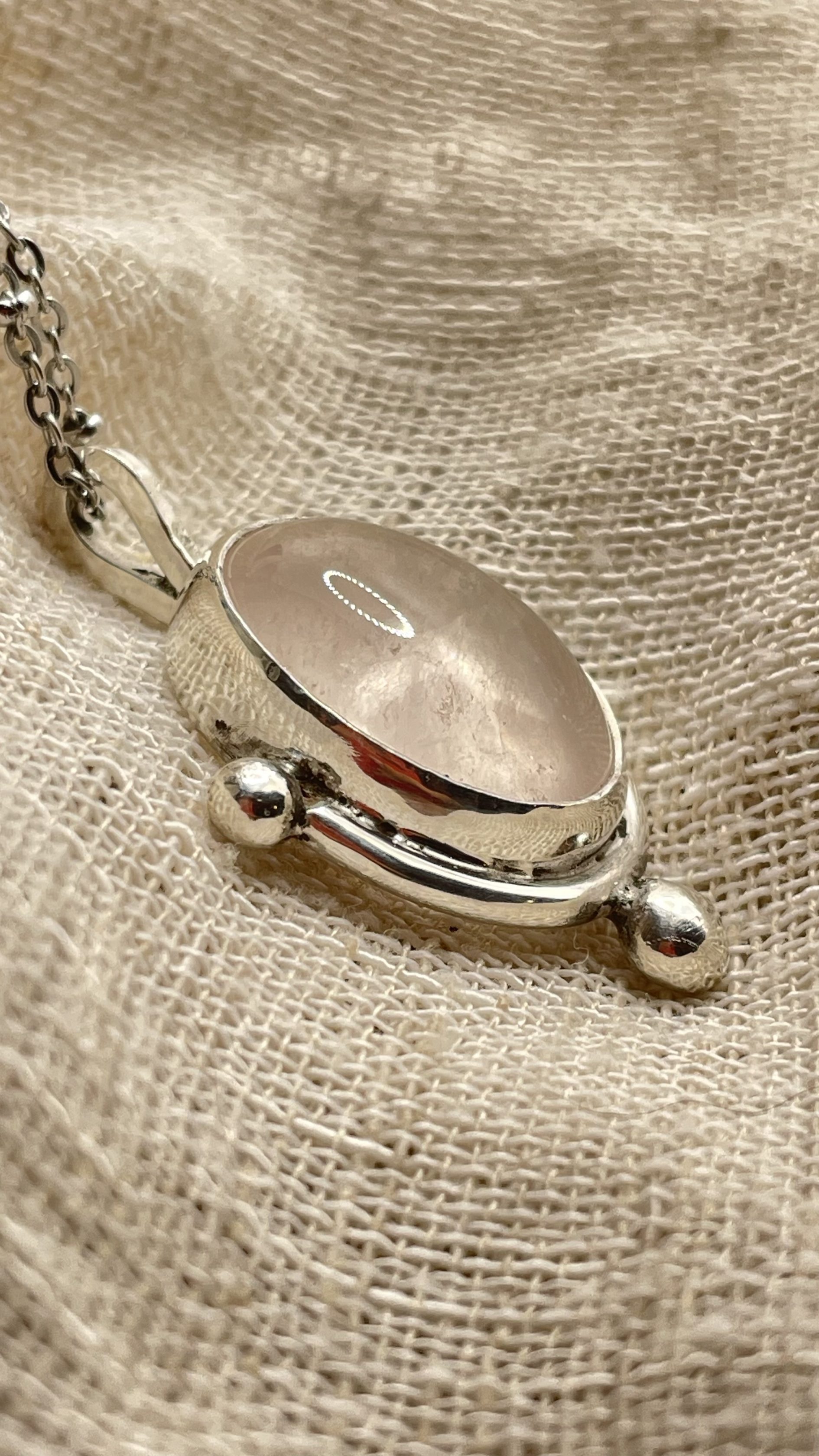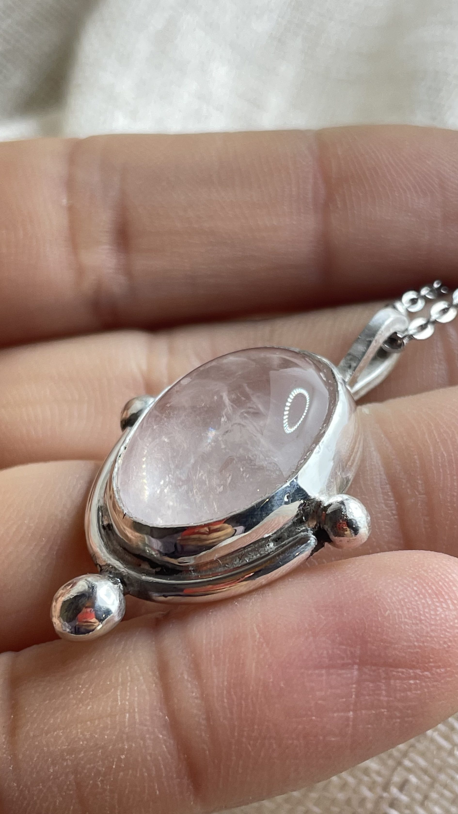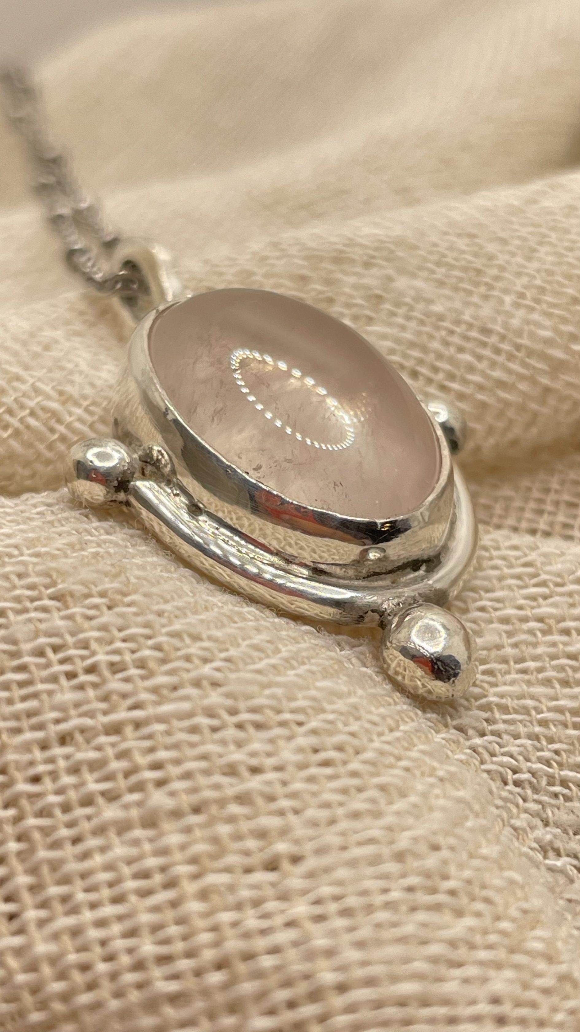 Collar con cuarzo rosa natural y plata de ley