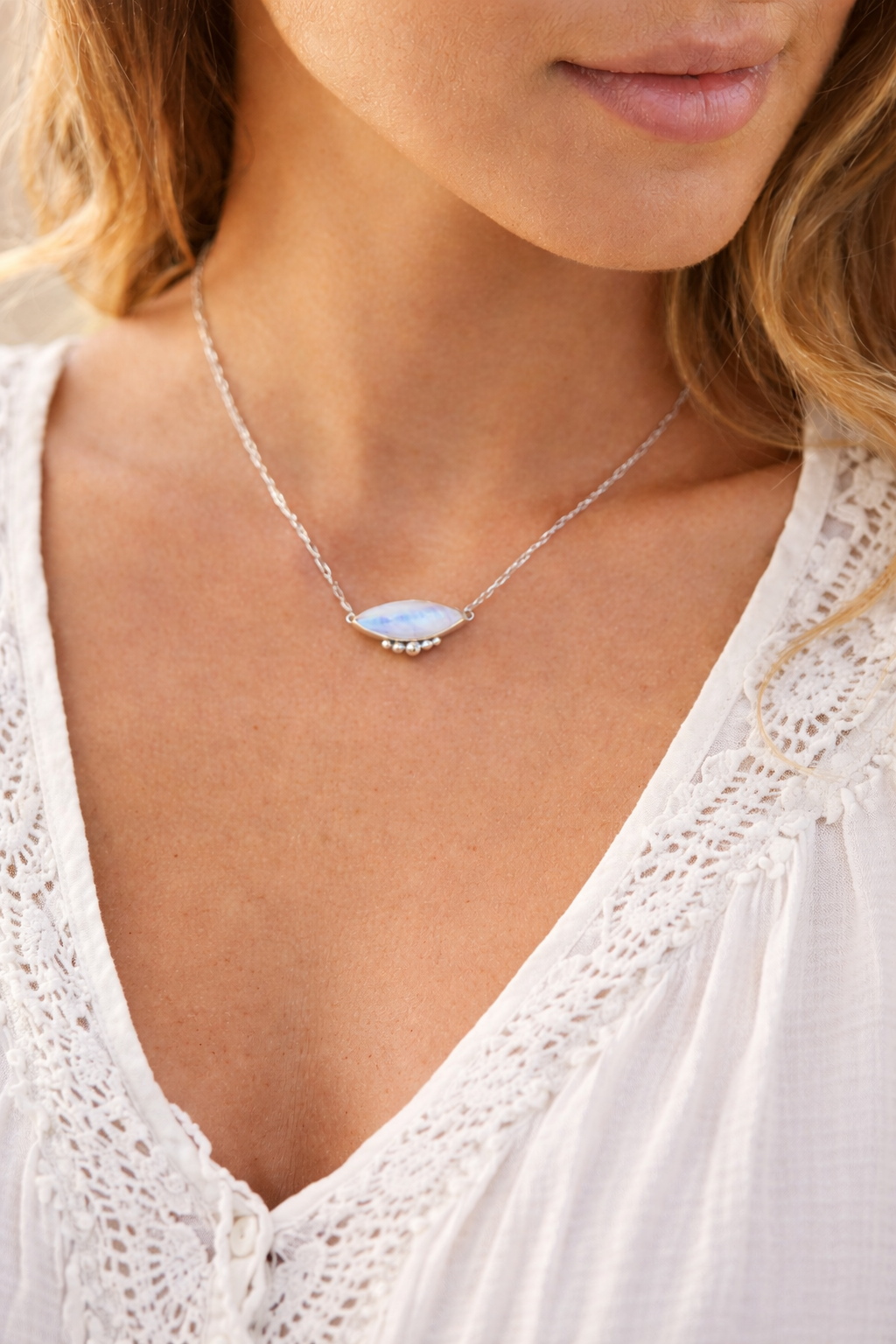 Collar de Piedra Luna en Plata – Colgante Navette Artesanal
