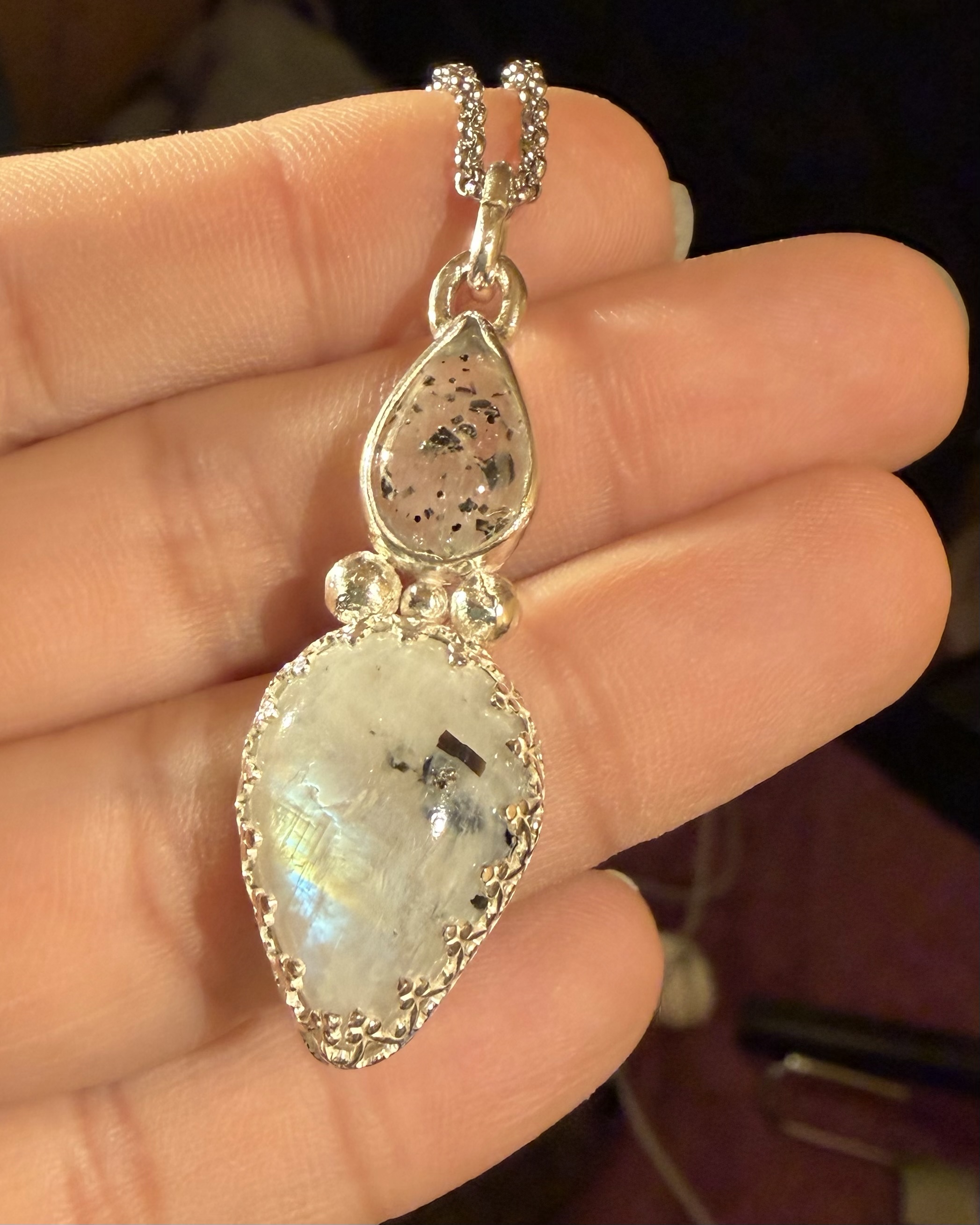 Collar con cuarzo cristal y piedra luna arcoíris